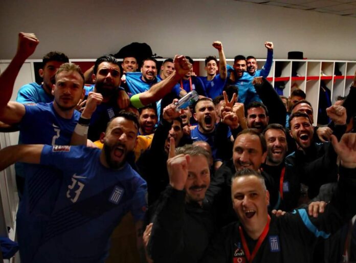 Μέσα στα αποδυτήρια οι παίκτες και το τεχνικό τιμ της εθνικής ομάδας έγιναν ένα κουβάρι και πανηγύρισαν το σπουδαίο αποτέλεσμα στη Γρανάδα!