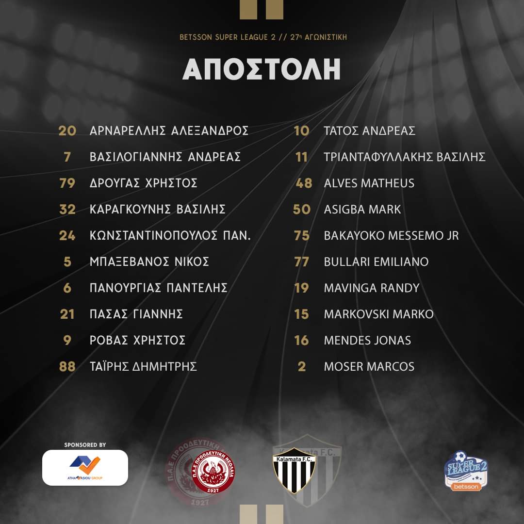 Η αποστολή της ομάδας μας για την αναμέτρηση με την Προοδευτική στα πλαίσια της 27ης αγωνιστικής της BETSSON SUPER LEAGUE 2.#KalamataFC #Kalamata #MavriThiella #sl2 #betssonsuperleague2 #betssonsuperleague2