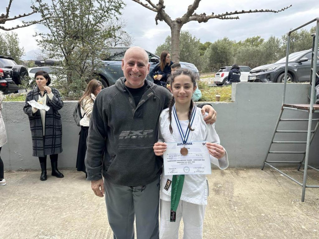 Χάλκινο μετάλλιο για την αθλήτρια Όλια Ζαφειράκη του συλλόγου Τζούντο “Αθλητής” στο Πανελλήνιο Πρωτάθλημα Τζούντο παίδων/ κορασίδων Α’ και Β’ κατηγορίας Νοτίου Ελλάδος. Η διοργάνωση έλαβε χώρα την Κυριακή 11 Φεβρουαρίου 2024 στο κλειστό γυμναστήριο sport camp Λουτρακίου με την συμμετοχή αθλητών και αθλητριών από 44 σωματεία με 118 αθλητές στους παίδες Α, 67 αθλήτριες στις κορασίδες Α, 116 αθλητές στους παίδες Βκαι 58 αθλήτριες στις κορασίδες Β. Η 14χρονη αθλήτρια του συλλόγου “Αθλητής” έλαβε την τρίτη θέση στην κατηγορία 52 Κιλών Κορασίδων Α’, πραγματοποιώντας μια ακόμα επιτυχία για τον σύλλογο αλλά και για την ίδια προσωπικά, έχοντας πάντα στο πλευρό της τον προπονητή του συλλόγου Ιωάννη Γρίβα (στη φωτο που ακολουθεί μαζί με την νεαρή αθλήτρια).